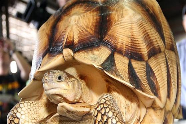 安哥洛卡象龜的一大特征就是,它們的背甲中有一枚喉盾極為突出。安哥洛卡象龜的背甲高度很高,并且在中部會(huì )隆起一塊,非常明顯。安哥洛卡象龜的背甲是非常典型的圓形,其突起的部分也是圓形的,腹甲的顏色比背甲的顏色要淡很多,但都是黃色。