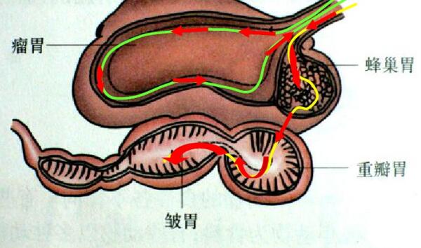 牛的第四個(gè)胃“皺胃”:位于牛右側腹底部,是牛真正意義上的胃,它可分泌消化酶,讓牛吃過(guò)的草達到真正意義上的消化和吸收。