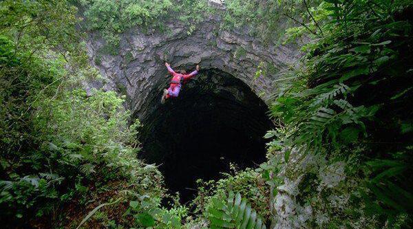 墨西哥燕子洞深邃,從上面往下看,完全看不到底,給人一種凝視深淵的恐怖感;另外,燕子洞內棲居著(zhù)成千上萬(wàn)只蝙蝠和燕子,這也正是“燕子洞”得名的原因,不過(guò)正是這些鳥(niǎo)的存在,使得洞穴內鳥(niǎo)糞堆積2米多高,跳傘進(jìn)入的人都會(huì )落到鳥(niǎo)糞上,想想就恐怖啊!