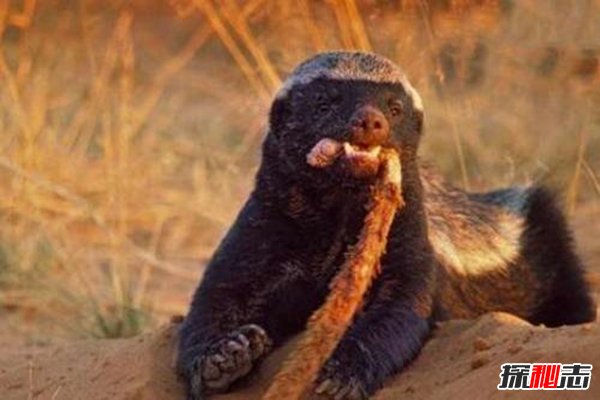 據資料顯示平頭哥蜜獾最?lèi)?ài)的就是毒蛇和蜂蜜,平頭哥作為這世上少有的對蛇毒產(chǎn)生抵抗性的動(dòng)物,簡(jiǎn)直能將毒蛇當做辣條吃,據說(shuō)它15分鐘就能吃掉一條1.7米的蛇,再加上平頭哥的活動(dòng)范圍巨大,每小時(shí)能跑9.6公里,所以從小型昆蟲(chóng)到大型毒蛇它都吃,據資料它的清單中有不下60種獵物,可以說(shuō)是完美的詮釋格言中的“我不想針對誰(shuí),在我眼里你們都能吃”。