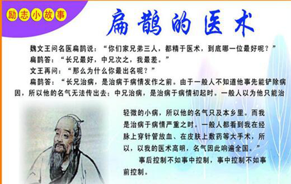 起死回生的主人公叫做扁鵲,有人可能想問(wèn)扁鵲是哪個(gè)朝代的人,據傳他是春秋戰國時(shí)期越國人,自小師從長(cháng)桑君學(xué)醫,醫術(shù)十分了得,可以看清人五臟六腑內的病癥,這讓他在春秋時(shí)期就已經(jīng)非常有名了。大家都傳說(shuō)越國有位神醫能醫所有不可醫之病,扁鵲由此小有名氣。
