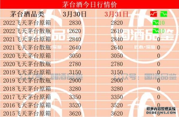 53度飛天茅臺指導價(jià)一瓶難求,在突破3500元大關(guān)時(shí),一度回跌至2800元左右,回收價(jià)也低至2200元左右。但在春節再次回暖,并且在開(kāi)年后穩步提升,根據茅臺酒回收價(jià)格53度價(jià)格今日行情,散瓶回收價(jià)在2610元,原箱則為2820元。