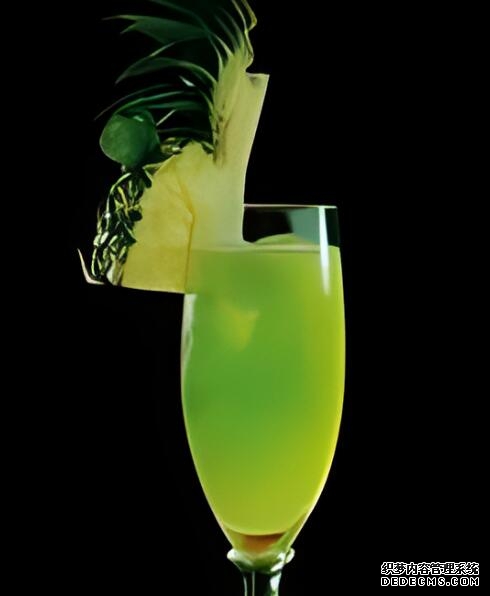 原料:金酒30ml、綠薄荷酒10ml、菠蘿汁10ml、冰塊若干;