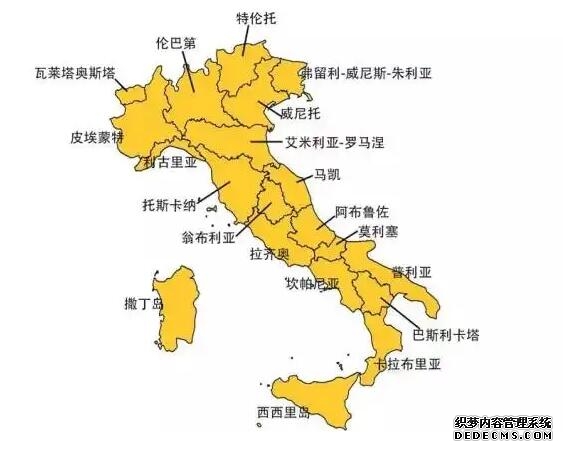 意大利葡萄酒被認為是世界上最難懂的葡萄酒之一,除了復雜的分級制度,最主要還在于多達350種釀酒葡萄(官方認可的)。由于意大利整體氣候復雜,土質(zhì)差異大,因此劃分了多達20個(gè)產(chǎn)區,基本上與行政劃分一致。