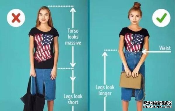 2、褲子上提:如果是天上腿短的女性,想要讓腰線(xiàn)上升,最好的方法就是學(xué)會(huì )穿衣,如果不會(huì )穿衣服,那腰線(xiàn)一直很低,人看起來(lái)像小不點(diǎn);如果會(huì )穿衣服,就如上圖所示,腰線(xiàn)在視覺(jué)上會(huì )提升不少,穿衣服效果也很好看。