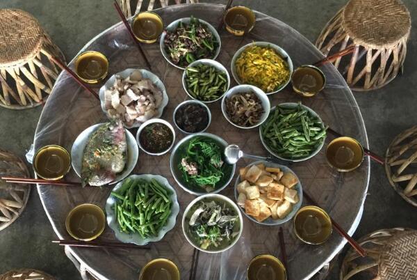 布朗族的主要糧食是旱谷,此外還有玉米,蕎麥等。蔬菜則是小白菜、冬瓜、南瓜等,肉類(lèi)以牛、羊、豬、雞最常見(jiàn),偶爾還會(huì )捕食野味和昆蟲(chóng)。布朗族烹制菜肴多是清煮和涼拌,肉類(lèi)則是舂、炸、蒸。