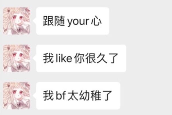 “紅茶女生”這個(gè)梗是出自幾張聊天記錄,那幾張聊天記錄中的經(jīng)典語(yǔ)錄有,“i love you,我非常like你”、“我也有bf,但我更like你,我就要say出來(lái)”、“跟隨your心,我like你很久了,我bf太幼稚,你比他成熟穩重”、“我最后還要再爭取一下,我like你的成熟,like你的穩重,like你身上那些與眾不同的,我bf身上沒(méi)有的東西,那是成熟的初一男人man才有的特質(zhì),我so欣賞”等等。