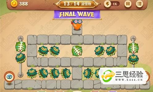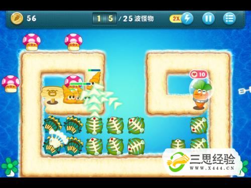 首先,我們要清楚這一關(guān)使用的主要武器為多重箭和魚(yú)刺,而且一共會(huì )有25波怪物企圖襲擊金蘿卜。