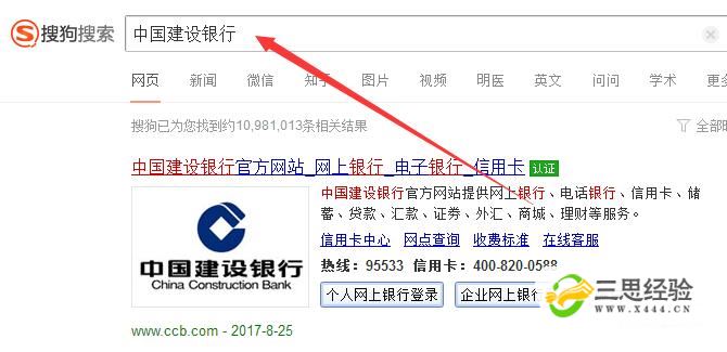 打開(kāi)電腦上的瀏覽器搜索“中國建設銀行”,點(diǎn)擊官網(wǎng)進(jìn)入。