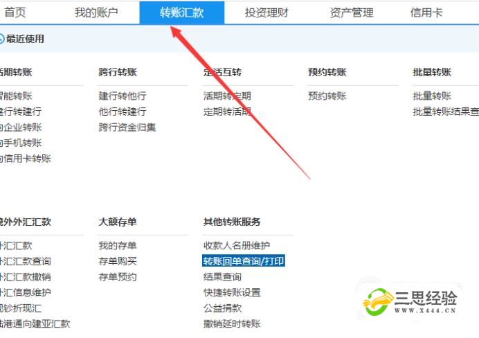 接著(zhù)點(diǎn)擊“轉賬回單查詢(xún)/打印”