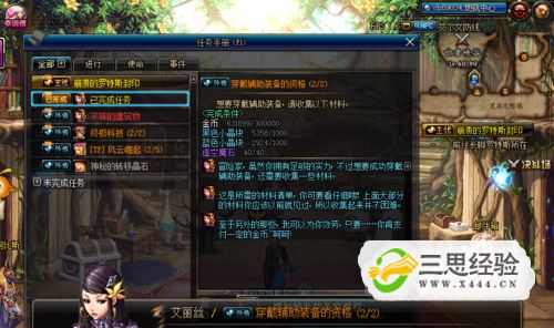 接取-----穿戴輔助裝備的資格(2/2)達成以下條件:金幣:0/300000黑色小晶塊:0/1000藍色小晶塊:0/1000虛空魔石:0/40