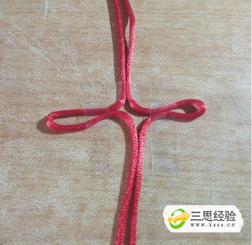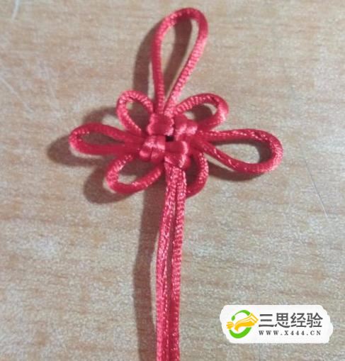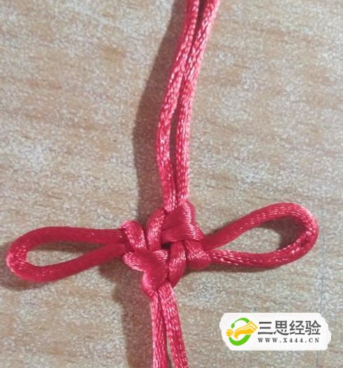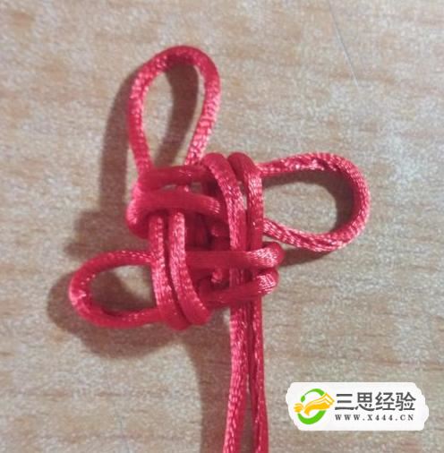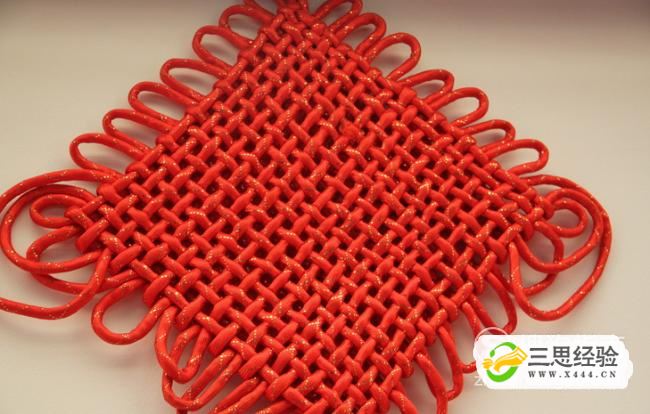 對角拉緊,是中間大致呈正方形,再將中間四角的對角線(xiàn)往外拉,如圖所示,一個(gè)簡(jiǎn)易的中國結完成了
