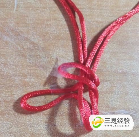 把左邊的兩根壓著(zhù)翻下來(lái)的兩根,塞入到下方右邊兩根拉出來(lái)